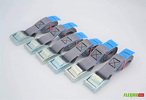 Flexmo Spanngurte Set mit Klemmschloss (6 Stufe), 3,5m lang, 25mm betrunken, Spanngurt Fahrrad, Befestigungsriemen, Zurrgurte in Profi-Qualität von Kögl, hergestellt in Deutschland