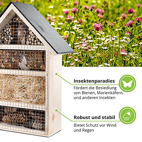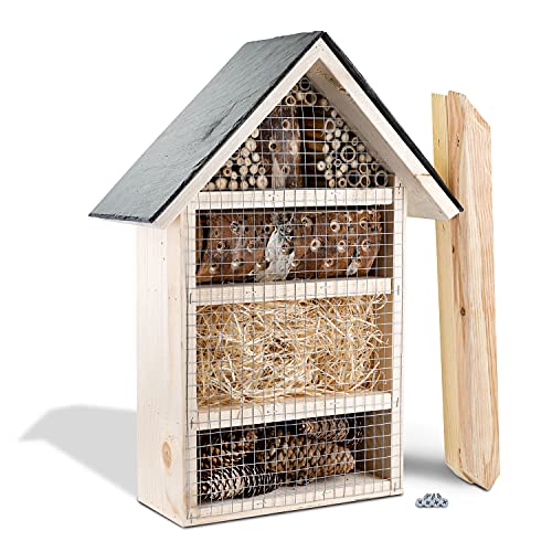 GARTENETAGE Insektenhotel mit Schieferdach/Naturbelassenes Insektenhaus & Bienenhotel/massives Insektenhotel zum…