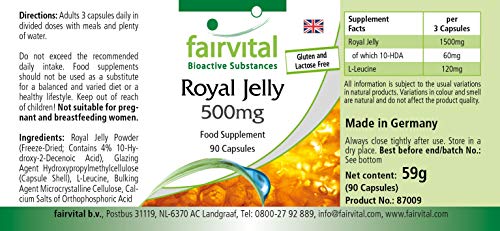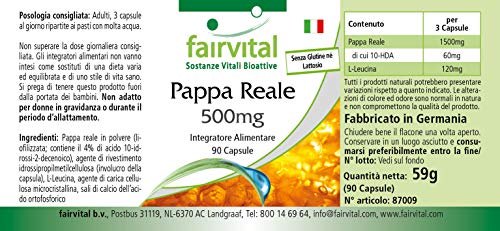 Fairvital | Gelée Royale 500mg – 90 Kapseln – HOCHDOSIERT – standardisiert auf 4% 10-HDA