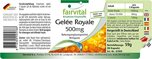 ✔ Fairvital DEUTSCHE QUALITÄT: Tagesdosis: 3 Kapseln pro Tag enthalten 1500mg Gelée Royale, davon 60mg 10-HDA. Hochdosiert! Hervorragendes Taxe-Leistungs-Angelegenheit! Standardisiert uff 4% 10-HDA (10-Hydroxy-2-Decensäure).