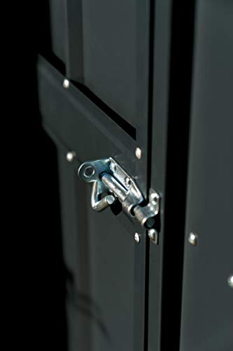 Die Premiumgerätehäuser von globel bestechen durch ihre hochwertige Abhaltung: Das Stahlblech ist stets rundum feuerverzinkt und weist aufgrund des feinrippigen Panel-Designs und der innen verstärkten Ecken eine erhöhte Stabilität auf. Es gibt keine spitzen Schrauben im Innenbereich, dieweil sie in ein Kastenprofil geschraubt werden – in herkömmlichen Metallgerätehäuser sind hier durchschnittlich L-Profile verarbeitet. Die Farbe wird nach der Herstellung der Stahlbasis in einem 4-stufigen Verfahren eingebrannt und veredelt. Das macht die Oberfläche robust gegen Rost und Kratzer. Bei der Abhaltung wird weitestgehend auf Kleinteile allesamt Kunststoff verzichtet. So ist z.B. die Dauerbelüftung über gestanzte Lüftungsschlitze gewährleistet.