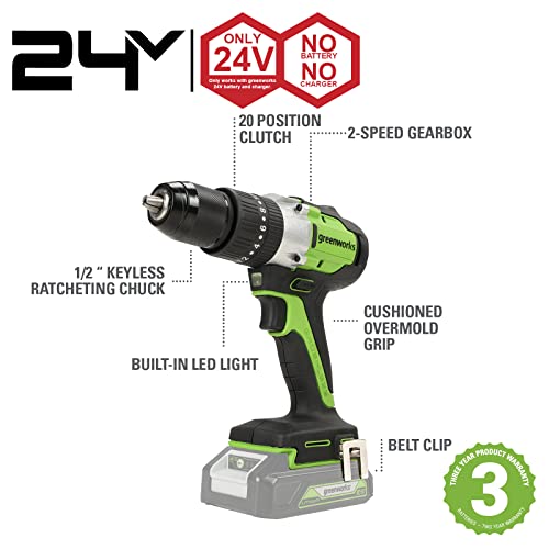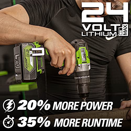 Greenworks Akku-Bohrschrauber GD24DD60 (Li-Ion 24V 60 Nm Drehmoment 1700 U/min 1/2 „Schaftdurchmesser leistungsstarker…