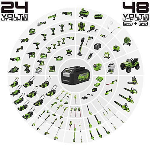EIN AKKU FÜR ALLE – die Greenworks 24V Akkus von 2Ah bis zu leistungsstarken 4Ah sind vielseitig einsetzbar & via vielen Produkten jeglicher dem Haus Greenworks im Ausschnitt Garten & Werkstatt kompatibel
