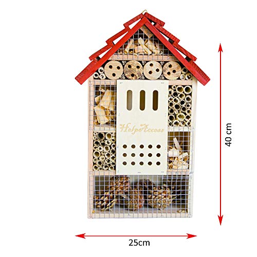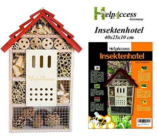 HelpAccess® Insektenhotel aus Holz, Insektenhaus, Nisthilfe und Schutz für Verschiedene Fluginsekten (L)