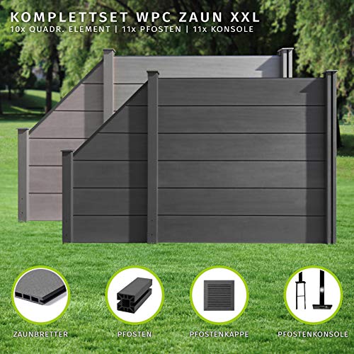 HORI® WPC-Zaun XXL I Sichtschutz-Zaun, Steckzaun, Gartenzaun Komplettset I beidseitig glatt I 10x Quadratisch + 11x…