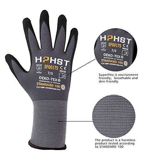 HOCHWERTIGE MATERIALIEN — Die Arbeitshandschuhe hergestellt aus 100% Nylonfaser und mit einer Nitrilschaumbeschichtung an den Handflächen und Fingerspitzen, bietet hervorragenden Komfort und Passform, Weichheit und Elastizität, um zu unterbinden, dass Staub und Sinken in den Handschuh gelangen. Es ist 30% dünner als die meisten Schaumnitrilhandschuhe auf dem Absatzgebiet, immerhin doppelt so mechanisch wie sie sind.