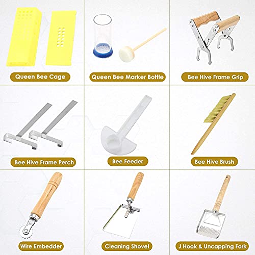 🍯【13PCS Imker Werkzeugset】- Imkerjacke, Schleierabdeckung, Handschuhe, Bienenraucher, Bienentransportkäfig, Bienenkönigin-Markierungskäfig, Holzgriff-Nestrahmenclip, Bienenstockregal, Bienentränke, Bienenstockbürste, Manueller Fadeneinbetter, Wabenreinigung Schaufel, Honigschneideschaufel. Die MATHOWAL Deluxe Suite enthält alle notwendigen Werkzeuge für die Arbeit am Bienenstock und macht die Arbeit einfacher und angenehmer.