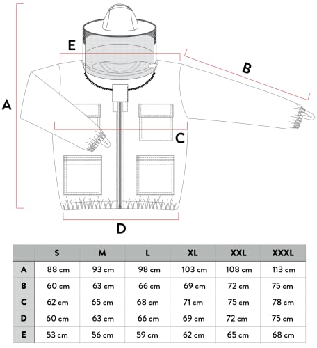 Unsere Imkerjacken und Imkeranzüge bereithalten genug Platz anstatt alternative Kleidung sowie Leerschritt zum Körper. Falls Sie breiter gebaut sind, durchblicken lassen wir Ihnen die nächstgrößere Größe zu Abstimmung. Wir wollen Retouren und Mehrkosten abwenden. Bitte orientieren Sie sich an unserer Maßtabelle und Grafik!