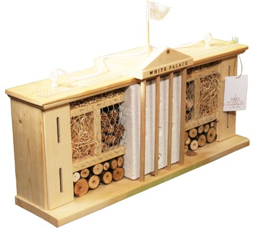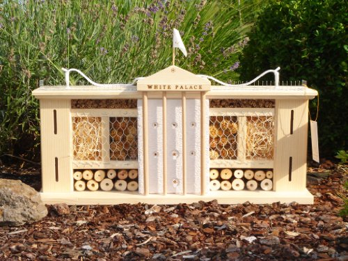 LUXUS-INSEKTENHOTELS 22633e „Weißer Palast“ – Design Wildbienenhaus aus unbehandeltem Holz – hochwertige Nisthilfe für solitäre Wildbienen – Insekten Nisthöhle – 58 x 12 x 30 cm – Weiß