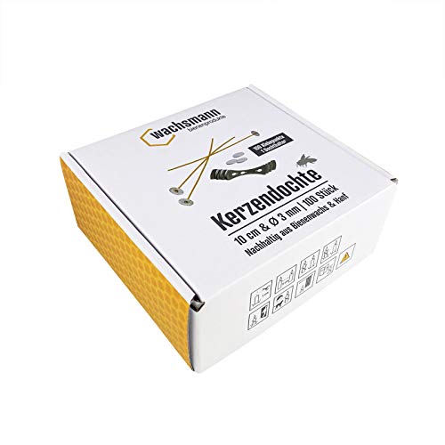 Bienenwachs-Docht aus Hanf â 100 Paraffinfreie Kerzendochte gewachst, Flachdocht 10 cm+1 lang, 3 mm breit, für Kerzen von 4-7,5 cm Duchmesser, mit Dochthalter & Klebepunkten, Kerzen selber Machen