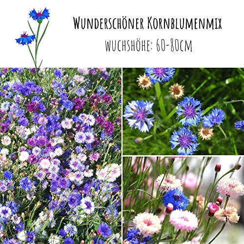 Kornblumen Samen (Centaurea cyanus) – Wunderschön leuchtende Blumen mit langer Blütezeit für eine bunte Blumenwiese (Mix…