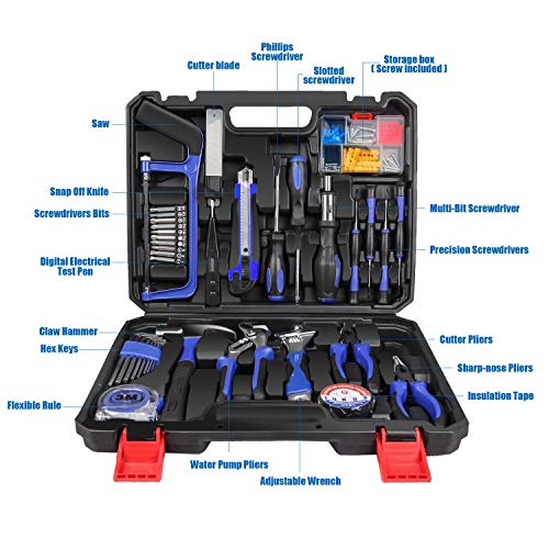 【BREITE EINSATZBEREICHE】 Diese Haushaltswerkzeugkiste enthält die am häufigsten verwendeten Werkzeuge für die täglichen Reparatur- und Wartungsarbeiten im Haushalt, sinnvoll für die meisten kleinen Reparaturen und Heimwerkerprojekte rund ums Haus. Es eignet sich sehr gut für Werkstätten, Bauarbeiter, Mechaniker, Werkstätten usw. Dieses Werkzeugset ist bekannt als eine ideale Geschenkauswahl für Familienmitglieder, Freunde, Partner usw.