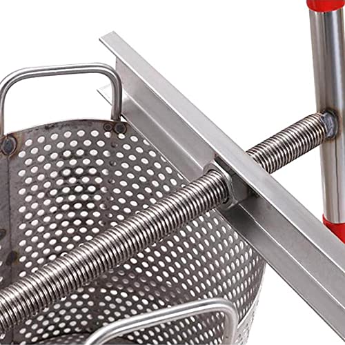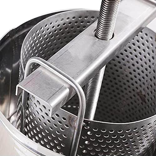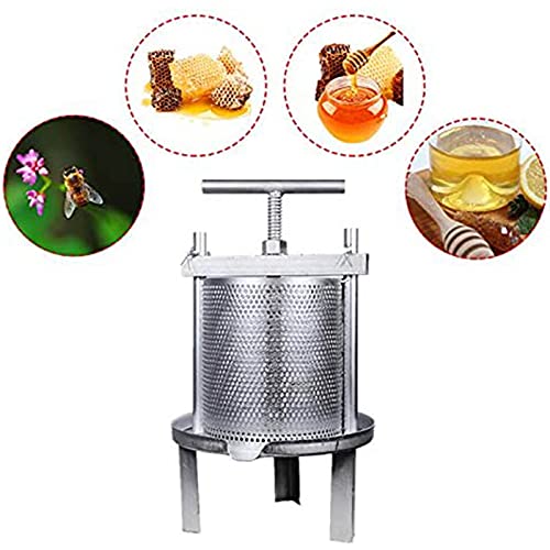 Große Kapazität: Diese Edelstahl-Haushaltshandbuch Honigpresse hat eine große Kapazität. Mit dem T-förmigen Griff speichert es Anstrengung, wenn Sie Honig drücken. Es gibt ein empfindliches Metallnetz auf dem Fass, das die meisten Bienenwachs extrahieren kann.