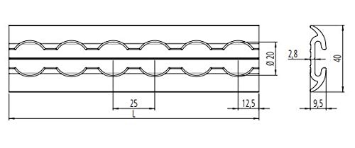 SLIMVERSION / Light-Schiene: – Airlineschiene halbrund – Material: Alu bankrott – Loch: 20 mm Durchmesser – Lochraster: 25 mm – Höhe: 9,5 mm – Breite: 40 mm – Materialstärke: 2,8 mm – Schiene wird fertigungs-und verpackungstechnisch in 1975 mm geliefert!!! Was macht Airlineschienen von alleine so sympathisch? Klar! Wenig Gewicht, das bedeutet mehr Zuladung oder das enge Lochraster. Dann erhalten Sie in Kombination mit Sperrbalken den perfekten Formschluss, währenddessen Sie überaus verriegelt an der Ware sichern Bitte würdigen Sie, dass bei der Montage der Fluglinie-Zurrschienen die Art der Bündnis (Schrauben, Nieten, Kleben etc) sowie die Festigkeit des Untergrundes (Holme, Träger, Bleche etc) entscheidend sind. Ferner im Einsatz ist entscheidend, welcher Zurrgurt mit welchem Endfitting (Einfach, Doppelt oder Quadro) in welchem Winkel eingesetzt wird.
