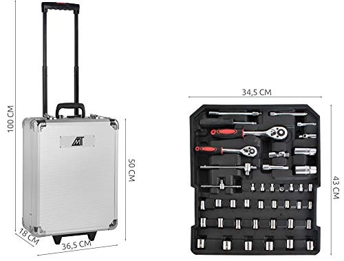 SPEZIFIKATIONEN – Werkzeugmaterial: C45 Stahl und Cr-V Chrom-Vanadium Cr-V; Kofferabmessungen (Länge/Breite/Höhe): 50/36,58/18cm; max. Höhe mit Griff: 100cm; Gewicht des Sets: 11,75 kg; Gewicht mit Verpackung: 12,3 kg.