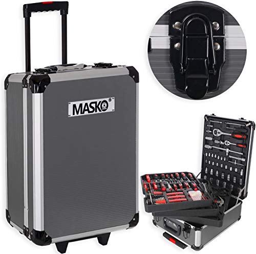 Mit dem Masko® Werkzeugkoffer stimmen Sie sich für einen tollen Alu Werkzeug-Trolley mit einem 969-teiligem Werkzeugsortiment. Der Koffer ermöglicht Ihnen mobil und schnell einsatzbereit zu sein. Der Werkzeugkoffer ist praktisch, funktional und super zu transportieren. Somit haben Sie immer alles gepflegt sortiert und inert griffbereit: Sie müssen also zu keiner Zeit nochmal grasen oder in wühlen bis Sie das passende Werkzeug gefunden haben. Sie können den Koffer inert abschließen so dass Ihr Werkzeug bis zum nächsten Einsatz gefestigt und geschützt ist.