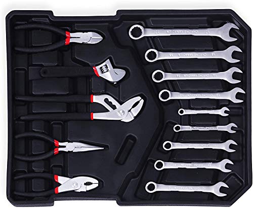 SET 2: Dieses Set enthält – 9 x Ringschlüssel (8/9/10/11/12/13/14/15/17 mm) – 1x Kombizange – 1x Seitenschneider – 1x Spitzzange – 1x Wasserpumpenzange – 1x Rollgabelschlüssel