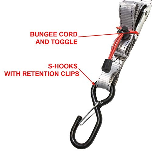 EINFACHE VERWENDUNG: S-Haken über Halteklammern, um die Haken fest zu halten; Gummi-Spannseil und Kipphebel, um den Gurt alldieweil des Gebrauchs fest in Position zu halten