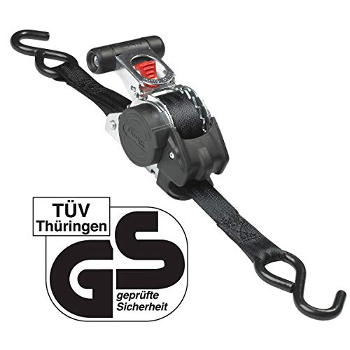 Der einfahrbare Zurrgurt unter Einsatz von Druckratsche Master Lock Nr. 3238EURDAT verfügt unter Zuhilfenahme von zwei 3 m x 25 mm große Zurrgurte unter Einsatz von Druckratschen. infache Installation und Verwendung + ein einfahrbares HiFi-Anlage: Länge wird automatisch abgestimmt und der Gurt wickelt sich automatisch auf. Geformter Kunststoffgriff an Stelle einfache Handhabung. Ergonomischer Haltegriff an Stelle überragende Griffigkeit. Der UV-behandelter Polyester-Netzstoff ermöglicht die Anwendung im Außenbereich und eine maximale Nutzungsdauer. Die verstärkte Schnalle ermöglicht eine Zurrkraft von 300 kg. Der Gurt ist ideal, um Koffer, Möbel, Matratzen, Sportausrüstung oder Motorräder zu unterstützen.
