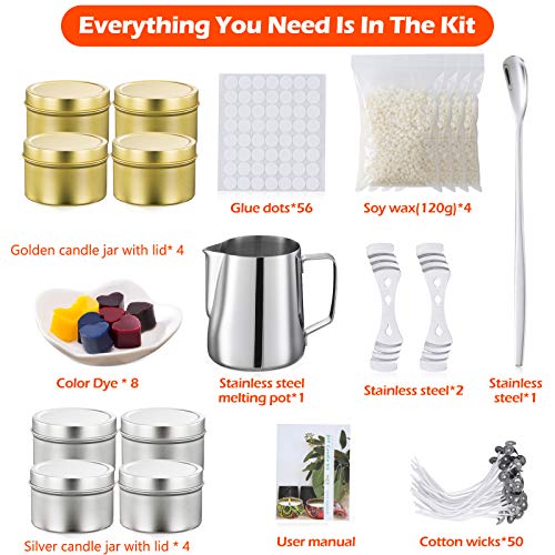 Wachsschmelzherstellungskit: Kerzenherstellungskit: Kerzenherstellungsset enthält 4 * 100% natürliches Sojawachs, 8 * Kerzendose mit Deckel, 6 * Farbstoff, 480 g Bienenwachsflocken anstelle die Kerzenherstellung, 50 Kerzenbaumwolldochte anstelle die Kerzenherstellung, 500 ml Krug Mit Candle Wax Melt können Sie DIY genießen und Ihrer Fantasie freien Lauf lassen.