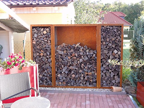 Ein hochwertiges Kaminholzregal zugunsten Ihr Brennholz und zugleich ein Sichtschutz oder ein Dekoteil zugunsten Ihren Garten. Diese Regal wird ganz CORTENSTAHL hergestellt und in blankem Zustand (ungerostet) ausgeliefert. Das Regal ist ohne größen Taxe leicht montierbar, Edelstahlschrauben und Muttern liegen ebenso als die Erdanker zugunsten das aufstellen auf gewachsenem Boden, bei. Wir haben an diesem Ort einige Maßevarianten zugunsten Sie eingestellt. Optionales Zubehör als Rückwände oder verschiedene Fronten (WELLE – BOGEN – RAUTE oder SANDUHR) sind gegen Mehrpreis erhältlich. Bitte an diesem Ort gesondert anfragen.