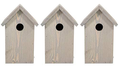 mgc24 Nistkasten – wetterfeste Nisthilfe aus Holz für heimische Wildvögel, 15,5 x 14 x 25 cm, grau, 3 Stück