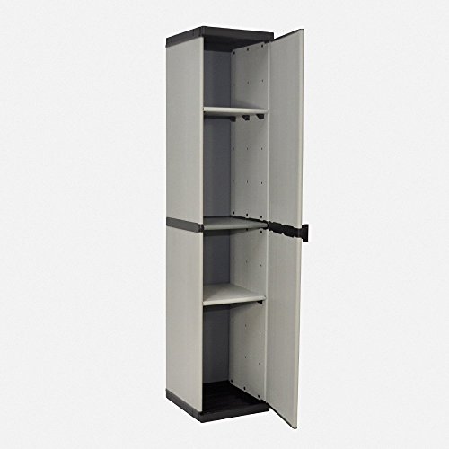 Lieferumfang: 1 x Kunststoff Spindschrank mit Freifach und drei schmalen Böden | 1 x Nischenschrank in hoher Verarbeitung mit 3 schmalen Böden, zwei davon höhenverstellbar | In Kombination: Multifunktionsschrank mit 3 Türen und optimalem Stauraum für unterschiedliche Bedarfe!