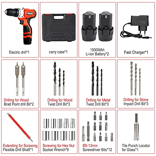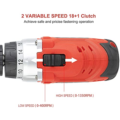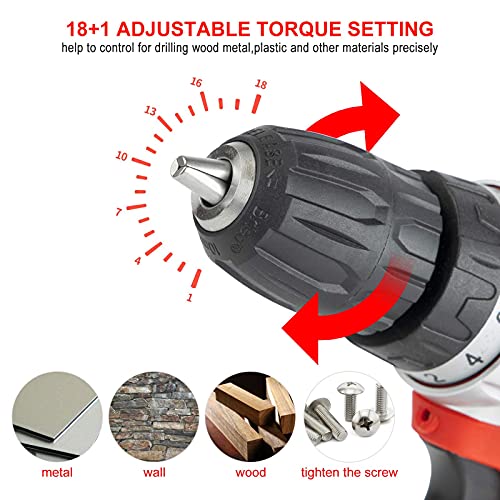 【18+1 Drehmomentauswahl und 30Nm Max】 12.6V-Stromspeicher-Bohrmaschine mit, 18+1 Drehmomenteinstellung zum Bohren in Stein, Holz, Metall, Kunststoff und allen Schraubenaufgaben. 30 Nm Drehmoment ermöglichen starkes Schrauben und kraftvolles Bohren