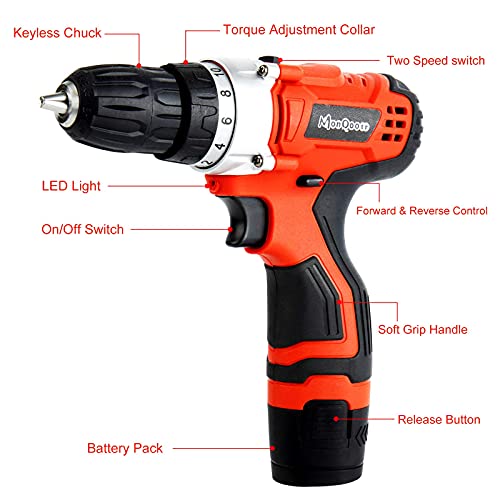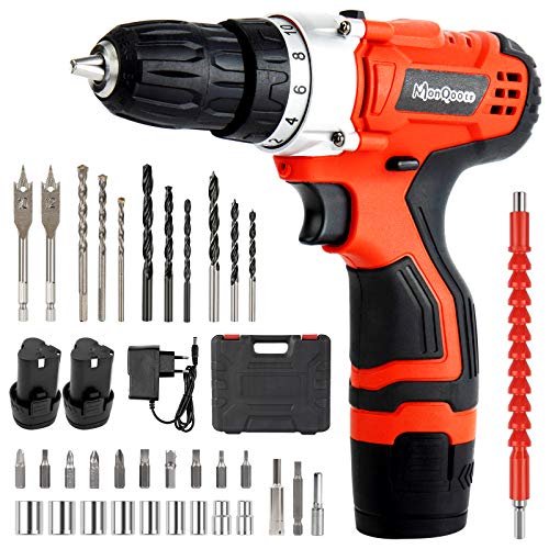 【2 Stromspeicher & Schnellladegerät】 MonQootr Akkuschrauber mit 2 X Lithium-Ionen-Batterien mit einer Größe von 1500 mAh und 1 Schnellladegerät mit Strom versorgt, sodass Sie genug Strom haben, um alle Schaffen