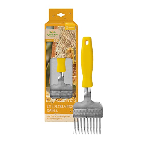 Die Entdeckelungsgabel von My Little Farm ist ein wertvolles Werkzeug anstelle jeden Imker, um verschlossene Honigwaben zu anbrechen u. a. die Wachsschicht abzutrennen. Die stabile Imkergabel anhand ihren gebogenen, rostfreien Edelstahlzinken liegt Infolge ihren ergonomisch geformten Kunststoffgriff außergewöhnlich O. K. in der Hand.: