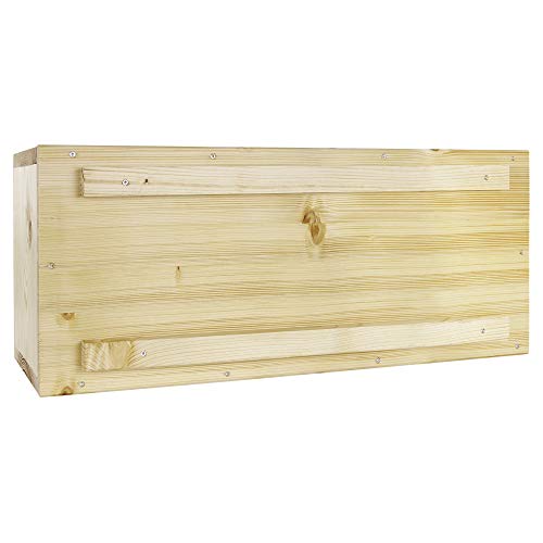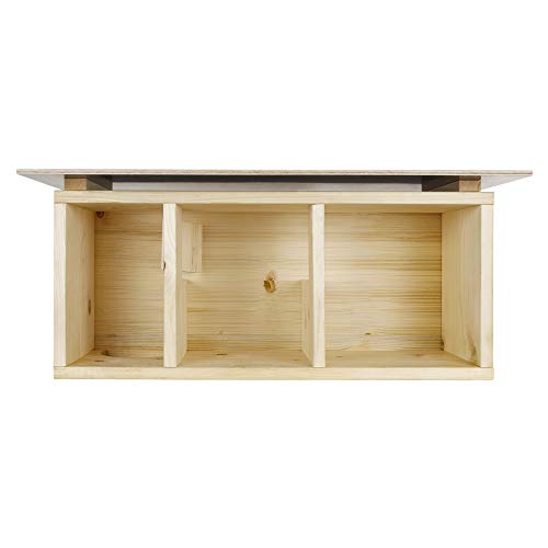 Maße ohne Dach: Länge 70cm, Breite 30cm, Höhe 28cm; Maße Dach: ca. 78cm x 38cm Schlafstelle: Länge 25cm, Breite 26cm, Höhe 25cm Futterstelle: Länge 21cm, Breite 26cm, Höhe 25cm. Der Eingang hat 12cm