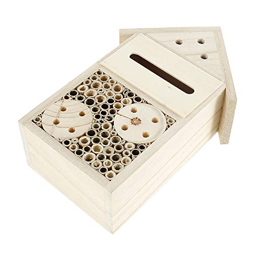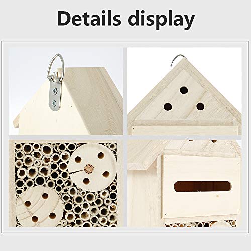 🦋 [Zwei Größen]: Bienenkasten für den Garten hat zwei Größen von 15 * 4 * 29,5 cm und 12 * 7 * 23 cm, die Sie selbst detachieren können. Das Insektenhaus hat Mix Löcher und 1 Fach, das für Bienen verwendet werden kann. Schmetterlinge und Marienkäfer bieten Abschirmung vor Schädlingen