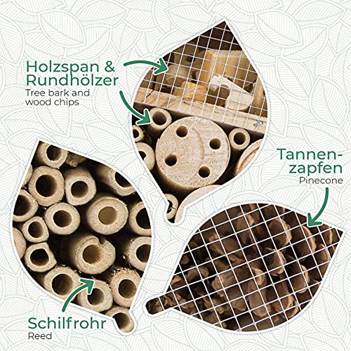 IDEALE WAHL: Wenn Sie zwar einen Balkon oder Garten haben, ist das Insektenhaus ideal, da es auf kleiner Fläche eine Auswahl an geeigneten Lebensräumen bietet. Das Haus macht es leicht, faszinierende Kreaturen als Tausendfüßler und Käfer in Ihrem Garten zu finden und zu beobachten.