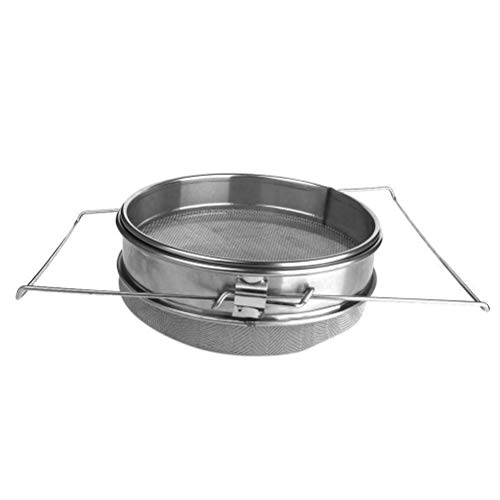 Dieses Honigsieb ist für die Honiggewinnung unerlässlich und besteht aus hochwertigem Edelstahl. Das doppelte Honigsieb ist vielseitig und passt in die meisten Fässer. Es ist vielseitig einsetzbar, da es mit verstellbaren Armen ausgestattet ist, die das Sieb für die meisten verschiedenen Fässer angebracht machen. Es arbeitet äußerst effizient und kann Verunreinigungen in kürzester Zeit aus dem Honig abschütteln. Es ist ein großartiges Werkzeug für Ihr Zuhause.