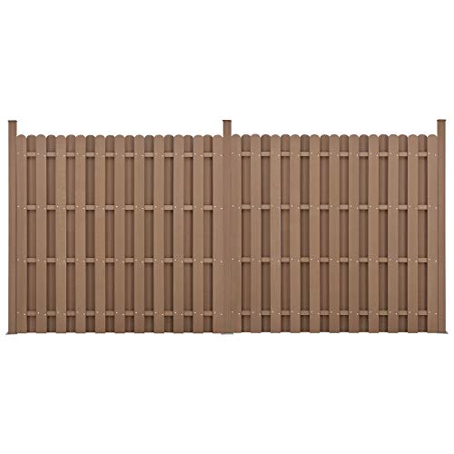 Maße: Ganz (HxB): 185 x 376 cm, Pfostenhöhe: 185 cm, Zaunelement (HxB): je 180 x 180 cm / Material: WPC / Farbe: Braun