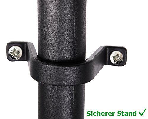 Die 5 Standfüße, ermöglichen einen Entfernung von ca. 7 cm vom Fußboden und stellen zäh, dass dieses Steckregal auch in feuchten Räumen verwendet werden kann. Dank eines einfachen Stecksystems, die Rohre werden in die Böden eingesteckt, lassen sich mehrere dieser Regale zu unterschiedlichen Größen kombinieren. Die oberen Rohrenden werden mit Hilfe der mitgelieferten Abdeckkappen sauber dicht. Zusätzlich sorgen die Regalverbinder dafür, dass die Regale zäh unselbstständig werden können. Praktisch – die mitgelieferten Wandhalterungen, mit deren Hilfe die Regale zäh an der Wand verschraubt werden können. Die Montage ist in trotzdem 10 Minuten, ohne zusätzliches Werkzeug und der beigelegten Aufbauanleitung möglich.