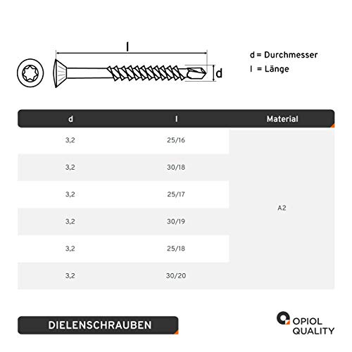 OPIOL QUALITY® Dielenschrauben TORX mit Linsenkopf 3,2×60 mm aus Edelstahl A2 V2A (500 Stück) Innensechsrund…