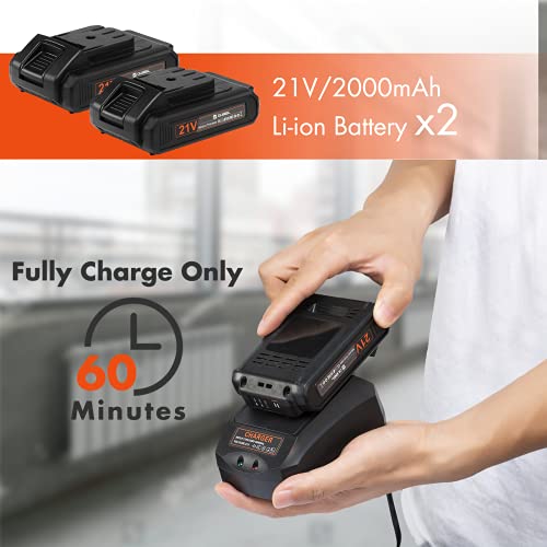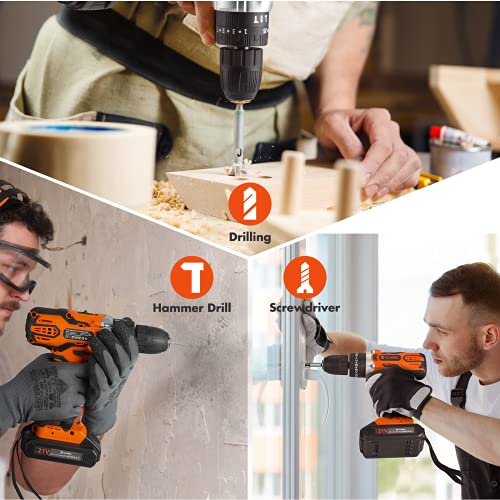aufladbare Batterie-Bohrer / Treiber: Sie können durch direktes Einlegen des Akkus bedient werden, was bequem zu bedienen ist. Die Batterie ist bis zu 21V, ausgestattet mit 2 Ersatzbatterien, freundliche Erinnerungsleistung. Der leichte Griff mit weichem Griff bietet zusätzlichen Komfort während des Gebrauchs.