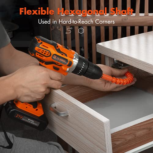 Akku-Bohrer / Treiber: Sie können durch direktes Einlegen des Akkus bedient werden, was bequem zu bedienen ist. Die Batterie ist bis zu 21V, ausgestattet mit 2 Ersatzbatterien, freundliche Erinnerungsleistung. Der leichte Griff mit weichem Griff bietet zusätzlichen Komfort während des Gebrauchs.