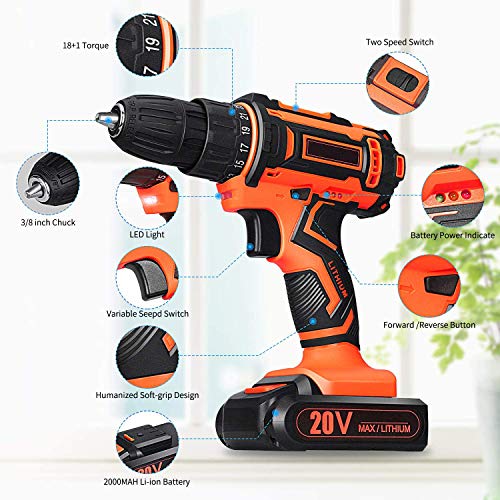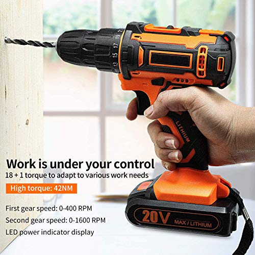 OUBEL Akkuschrauber/Akku Bohrschrauber, Max 20V/2Ah, 2x2000mAh Lithium Akku, Drehmoment 42N.m, 60Min Ladegerät, 3/8 Inch…