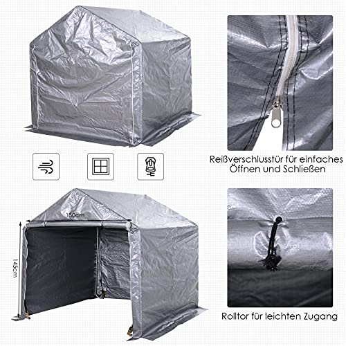 Outsunny Garagenzelt Foliengerätehaus Gerätehaus im Garten Foliengarage Galvanisierter Stahl PE Grau 2 x 2 x 2 m