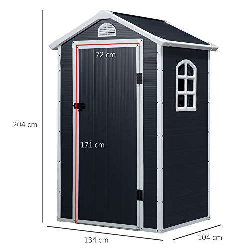 Outsunny Gerätehaus, Gartenhaus, Geräteschuppen mit Lüftungsfenster, Pultdach, Outdoor, Metall, Grau, 134 x 104 x 204 cm