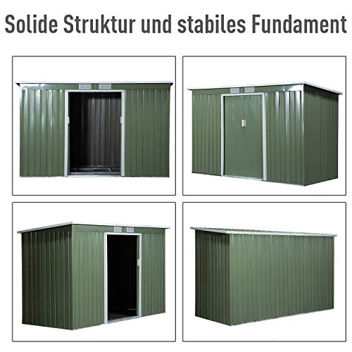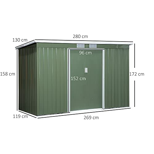 Outsunny Gerätehaus, Gartenhaus, Geräteschuppen mit Schiebetür, Lüftungsfenster, Pultdach, Outdoor, Stahl, Hellgrün, 280…