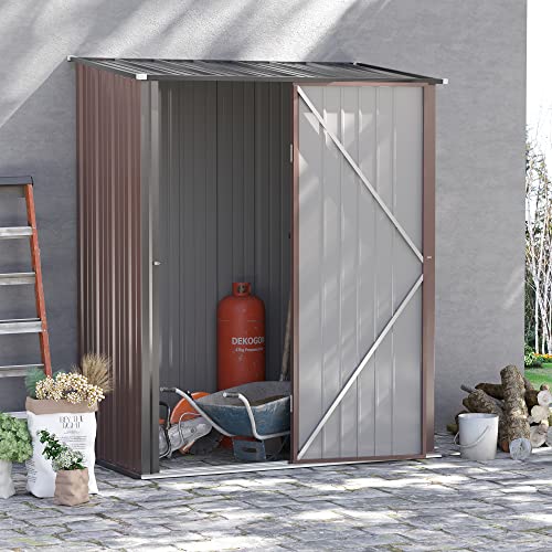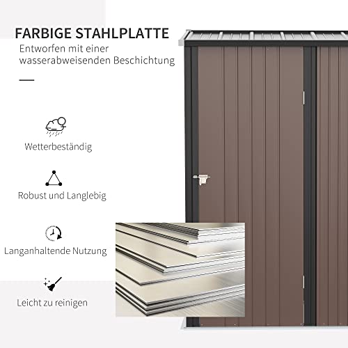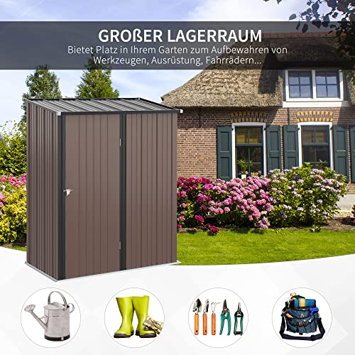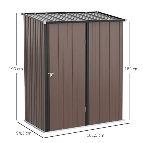 Outsunny Gerätehaus mit Pultdach 1,34 m² Metall Gartenhaus Geräteschuppen verzinkter Stahl Braun 161,5 x 94,5 x 196 cm