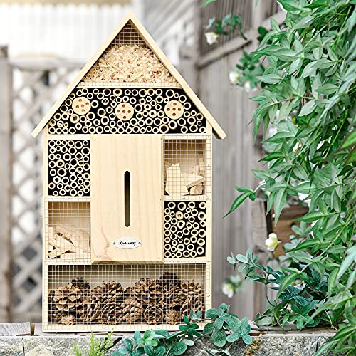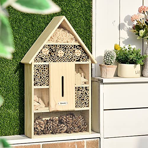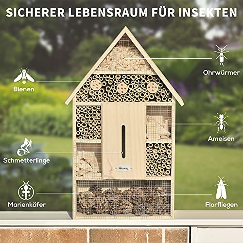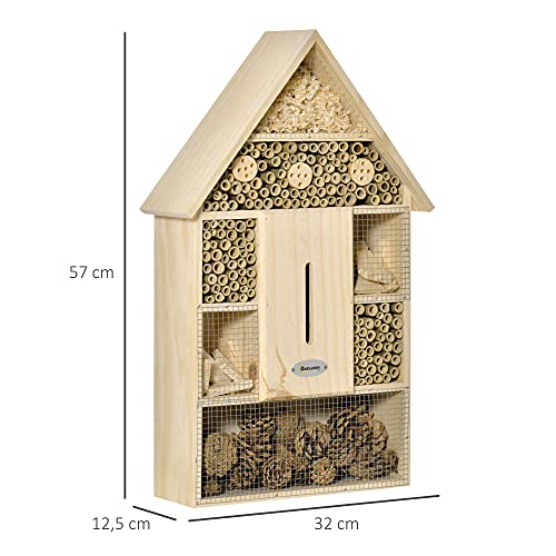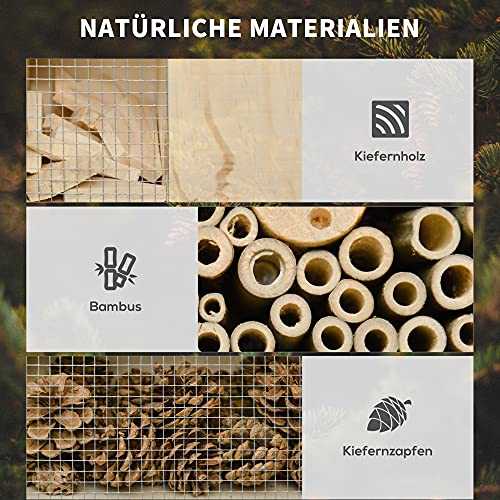 Outsunny Insektenhotel Insektenhaus mit 5 Etagen Metallgitter Bienenhotel aus natürlichen Materialien für Käfer Bienen…