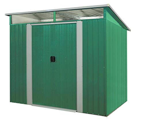 Wände, Dach und Bodenrahmenteile ganz galvanisiertem Stahlblech sind durch eine weitere Polyesterlackierung zuverlässig vor Rost und Kratzern geschützt. Lüftungsschlitze sehen nach eine optimale Belüftungdie. Sie wurden direkt ganz dem Stahlpaneelen ausgestanzt, sodass im Allgemeinen auf Kunststoff verzichtet werden konnte. Das schont die Umwelt, vom Herstellungsprozess bis zum Ergebnis des Produktlebenszyklus, und ist unabhängig davon schöner.