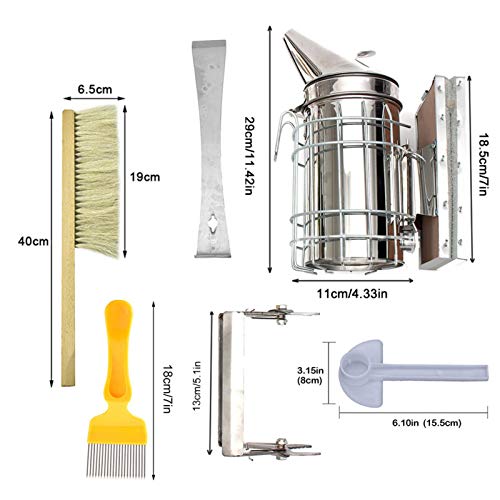 Paket, einschließlich: Das Kit enthält 1 großer Bienenstockraucher, einschalbendes Gabelwerkzeug, Bienebürste, Rahmengriff, Extrahierender Abstreifgummi, Bienenzuführwerkzeug.