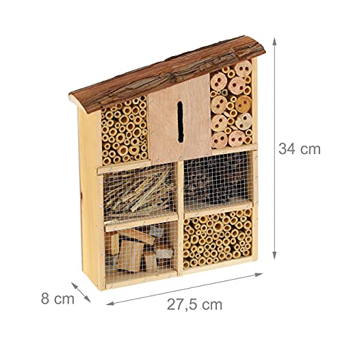 Relaxdays Insektenhotel, mit Schrägdach, Garten Nisthilfe Bienen & Schmetterlinge, Bienenhotel HxBxT 34×27,5×8 cm, Natur