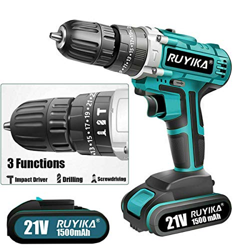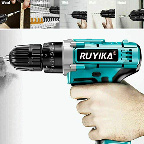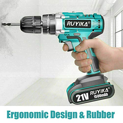 RUYIKA Akkuschrauber 21V mit LED Licht, 45 Nm maximales Drehmoment mit 1500mAh Lithium-Ionen-Akku, 28 PCS Zubehör, 2…