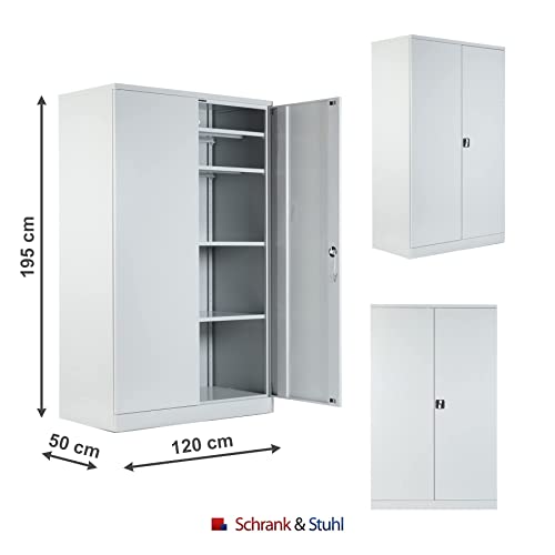 Hohe Qualität – Der Universalschrank besteht jedweder einem robusten Stahlkorpus mit verstärkten Vollblech-Flügeltüren. Dank der elektrostatischen und resistenten Pulverbeschichtung ist er selbst gegen Chemikalien geschützt.